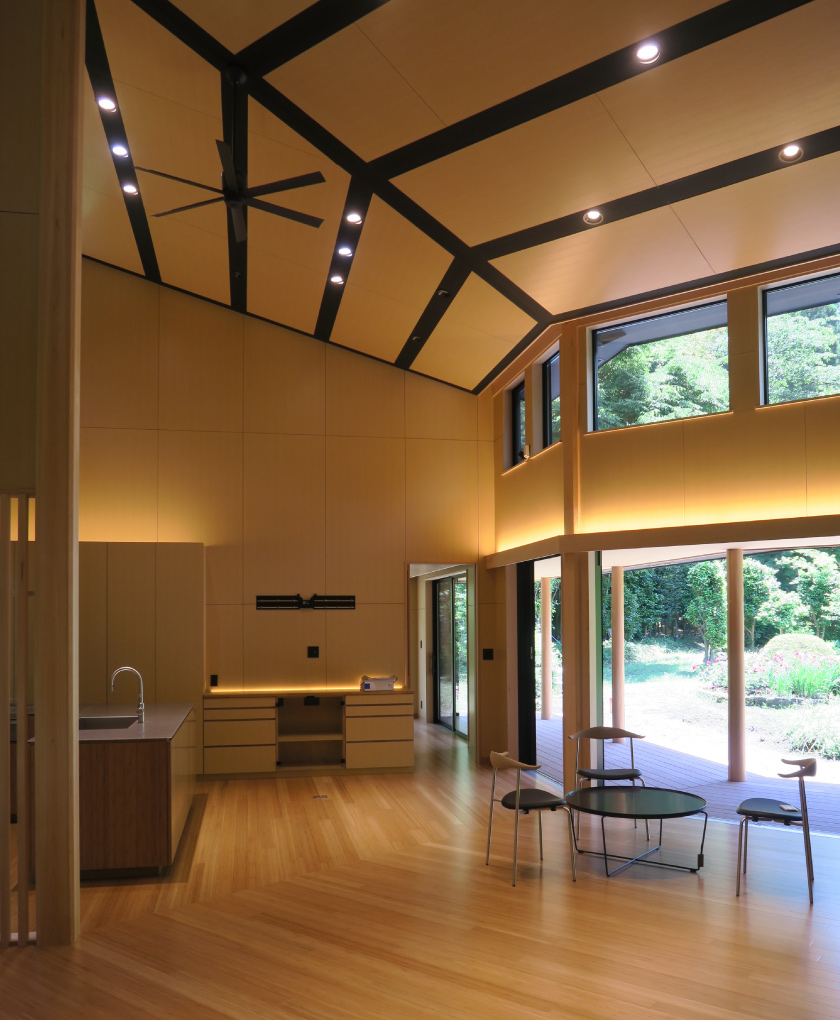 南面はほぼ開口されています、高窓からの光も十分に活用します。