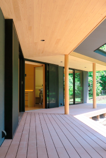 深い軒と南に広がるデッキが室内と屋外を心地よく繋げてくれます。